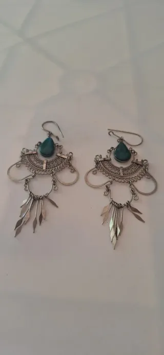 Elegantes pendientes con detalles en plata y piedras de turquesa. - Diseño colgante con forma de abanico. - Cierre de anzuelo para mayor seguridad. - Elaborados con plata de ley.