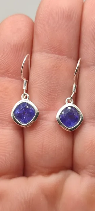 Elegantes pendientes de plata de ley 925 y tanzanita. Medida 2,7×0,9 cm con el enganche. Se entregan con bolsita para regalo.