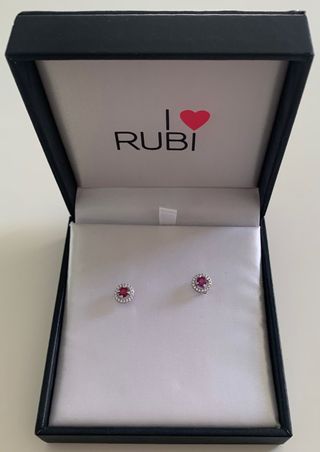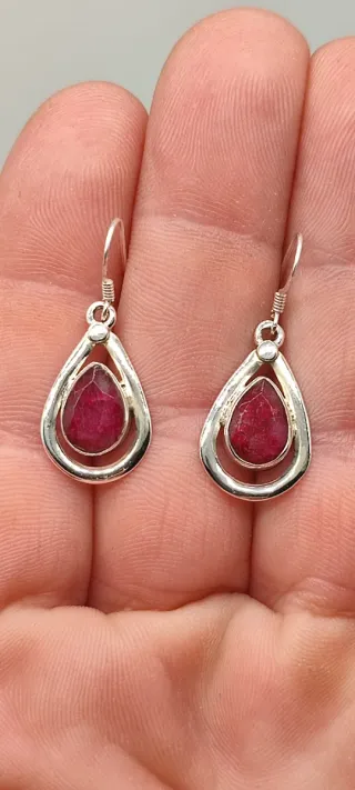 Pendientes con verdaderos rubíes engastados en plata de ley. Con certificado y caja. En perfecto estado, sin usar.