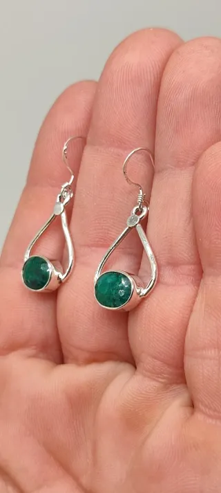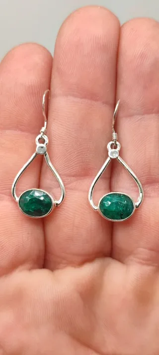 Bonitos pendientes de plata de ley 925 y esmeralda. Medida 2,7×1 cm con el enganche. Se entregan con bolsita para regalo.