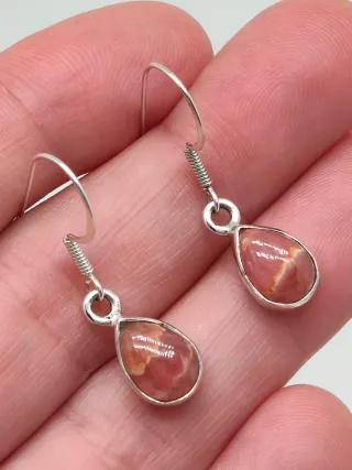 Elegantes pendientes colgantes con piedras de rodocrosita natural y plata de ley 925. - Diseño en forma de lágrima. - Cierre de anzuelo seguro. - Piedra semipreciosa con vetas únicas.