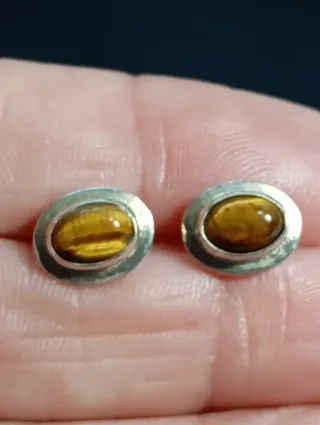Pendientes Plata Ley Ojo Tigre Ovalados