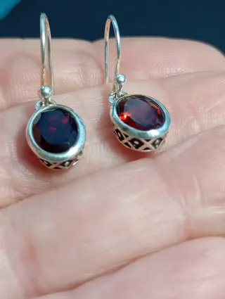 Elegantes pendientes de plata de ley con piedra granate. - Diseño clásico y atemporal. - Cierre seguro para mayor comodidad.