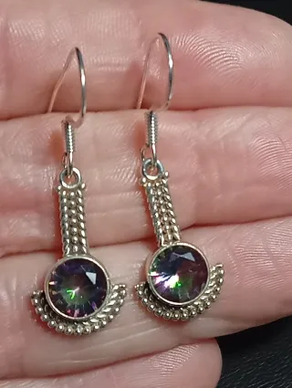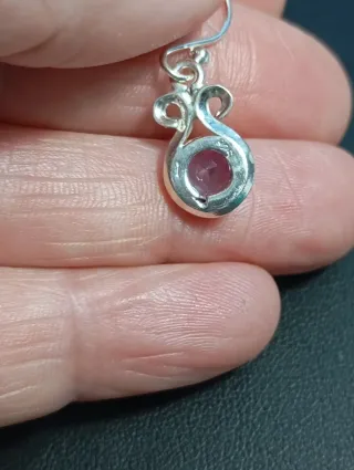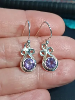 Elegantes pendientes de plata de ley con una piedra central de color morado. - Diseño delicado y moderno. - Cierre de anzuelo seguro.
