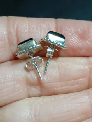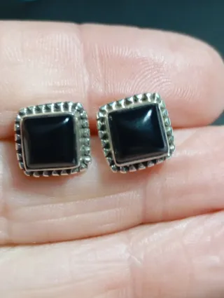 Elegantes pendientes cuadrados con piedra negra. - Plata de ley. - Diseño moderno.