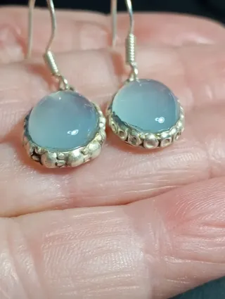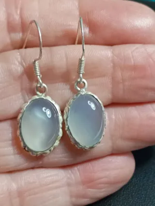 Pendientes Plata Ley Ovalados Piedra calcedonia