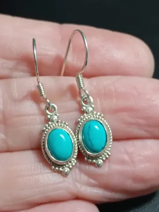 Elegantes pendientes de plata de ley con un diseño ovalado y una piedra turquenita - Plata de ley. - Diseño ovalado con detalle. - Cierre de anzuelo.