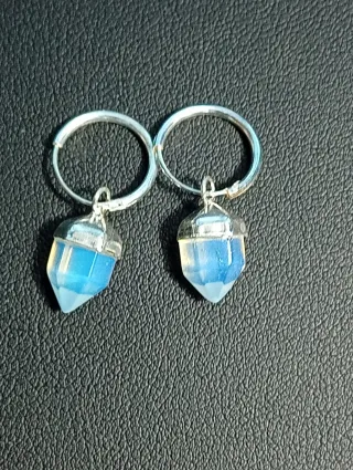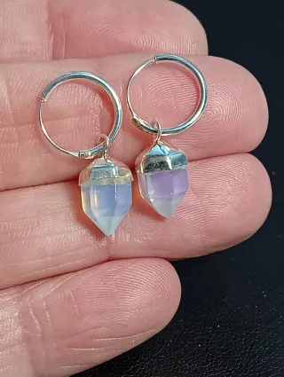 Elegantes pendientes de plata de ley con un diseño de aro y un colgante en forma de obelico - Plata de ley. - Colgante con piedra opalina