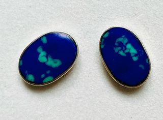 La azurita es un carbonato de cobre de color azul oscuro e intenso. La azurita puede transformarse lentamente en malaquita mediante proceso químico y por oxidación. A simple vista lo que podemos ver en esta transformación es el cambio de color, que pasa de ser azul oscuro a verde turquesa y entonces reciben el nombre de azurmalaquita como muestran estos pendientes ovalados en plata de ley 925. La azurmalaquita era una piedra de desarrollo personal y espiritual. Posee una frecuencia vibratoria intensa que ayuda a deshacer estructuras mentales y emocionales limitantes. Potencia la intuición y favorece el estado meditativo. Entrega en mano en Valencia y envios por wallapop