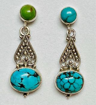 Esta piedra preciosa, con su color distintivo y su encanto exótico, ha cautivado a las personas durante siglos. Esta hermosa gema, apreciada por su tono azul verdoso y apariencia única, es un símbolo de estilo y elegancia en el mundo de la joyería. Los pendiente; como estos creados a mano en plata de ley 925 y ocabujones de turquesas de Arizona ( turquesas americanas) no son solo son muy hermosos, sino que llevan consigo añadido un significado especial y una conexión con la historia y la cultura del ser humano. Los pendientes con turquesas americanas son la combinación perfecta de labelleza natural, artesanía excepcional y diseño cautivador. Entrega en mano en j y envios por wallapop
