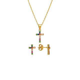 Conjunto Cruz Multicolor Plata Ley 925