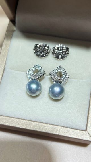 Pendientes Perla Akoya 8mm Gris Azulado Plata