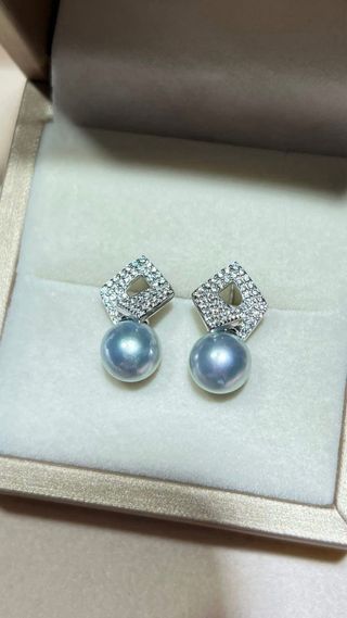 Pendientes perla Akoya 8 mm gris azulado + plata 925 con CZ Descripción: Pendientes con perla Akoya auténtica (8 mm), tono bluish gray natural, forma round/off-round y brillo alto. Montura en plata de ley 925 con circonitas (CZ).