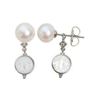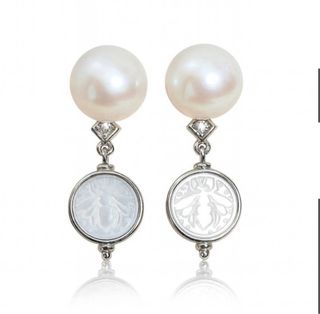 Pendientes plata 925 con perla Edison 10mm y nácar, circonitas (CZ) Pendientes elegantes con perlas Edison tamaño aprox. 9.8–10.0 mm, forma off-round, color blanco con overtone rosa. Materiales y detalles • Plata de ley 925 con baño de rodio • Colgante de nácar / Mother of Pearl (MOP) con diseño abeja • Detalles con circonitas (CZ) • Calidad de perla: AA+ • Cantidad: 1 par (2 perlas) Muy bonitos para diario o eventos, estilo fino y femenino. 📌 Cada perla es única, puede variar ligeramente en forma/color. Estado: Nuevo sin usar