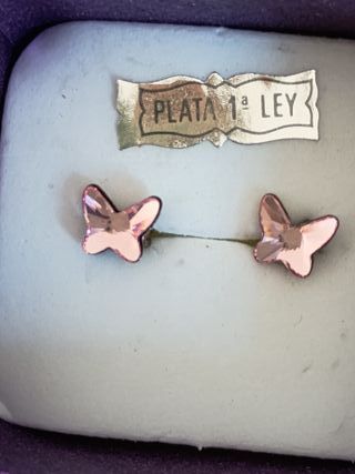 Elegantes pendientes con forma de mariposa.Vendo dos pendientes de plata de 1 º Ley en forma de mariposa y de color rosa, marca SWAROVSKY, originales. Sin estrenar, sin defectos ni desperfectos, con estuche. Precio: 15€. Gastos de envío por cuenta del comprador - Diseño delicado en forma de mariposa. - Acabado en plata. - Detalle en color rosa.