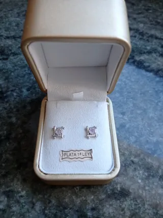 Pendientes plata circonita cuadrada