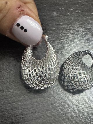 Elegantes aros de plata 925 con un diseño de malla intrincado. - Material: Plata de ley 925. - Diseño: Malla abierta. - Cierre: Presión.