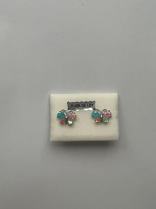 Pendientes infantiles. Nunca se han usado, de plata de ley. Con forma de mariposa y colores turquesa, rosa, naranja y verde.