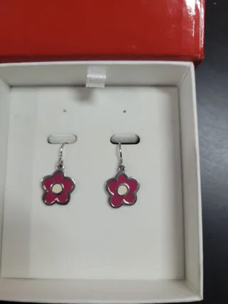 Pendientes de plata para niña de la marca Time Road. Vienen en una caja roja con un lazo negro. - Diseño elegante. - Plata de ley. A rosca para mas seguridad Perfectos para regalo
