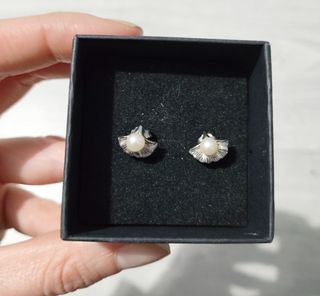 Pendientes pequeños, plata 925 con perlita. Caja incluida