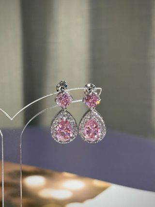 Pendientes elegantes con piedras rosas y plata