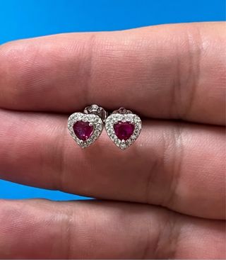 Preciosos pendientes de circonia rubí roja engastados en plata de ley 925. Son dos pendientes, ideales para añadir un toque de elegancia a tu look. -Modelo clasico -ideal para un regalo -Nuevo a estrenar -con su caja pequeña de regalo -Largo y ancho: 0.50cm