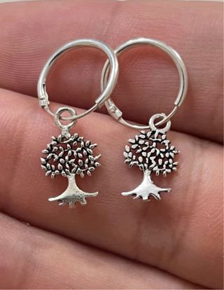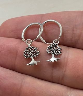Pendientes aro de arbol de la vida De Plata De Ley 925 -Modelo clasico -ideal para un regalo -Nuevo a estrenar -con su caja pequeña de regalo -Diametro aro: 1.20cm -Largo Colgante: 1 cm -Ancho Colgante: 0.70cm