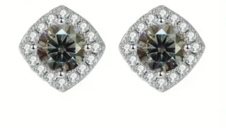 Elegantes pendientes Moissanita con certificado Gemológico de autenticidad GRA. - Diseño cuadrado con halo de pequeñas gemas - Piedra central : Moissanita gris de 0,5 quilates cada uno. Un total de 1 quilate. - Cierre de presión seguro -Sin estrenar...nuevo - En caja de 🎁 regalo NO negociable .