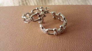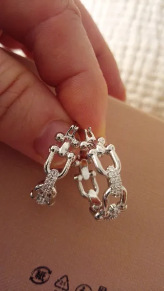 Elegantes aros con un diseño moderno y detalles brillantes. De diseñador de lujo. - Diseño tipo eslabón con pequeñas esferas. - Incrustaciones de pequeñas piedras brillantes. En acero inoxidable. Se envía en cajita de regalo. Totalmente nuevos ✨