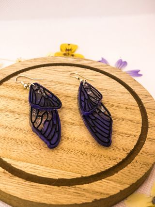 Pendientes artesanales con diseño de alas de mariposa. - Detalle de purpurina plateada. - Acabado en resina. - Cierre de anzuelo plateado.