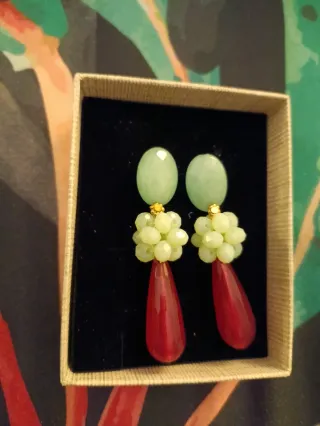 Pendientes mint y buganvilla, montado en plata acabado dorado Elegantes pendientes con un diseño único. - Combinación de tonos mint y buganvilla. - Cuentan con detalles de cuentas pequeñas.