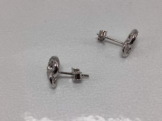 Elegantes pendientes de plata de ley. - Diseño curvo con incrustaciones de brillantes. - Cierre de presión.