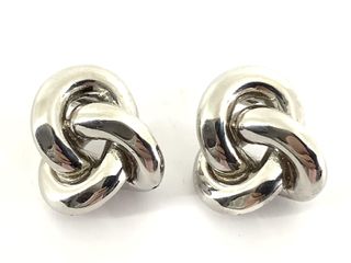 Elegantes pendientes de plata con un diseño moderno y adornados con piedras incrustadas bañados en plata de ley 925 con el sello grabado y antialérgicos. Sin uso. Más en mi perfil.