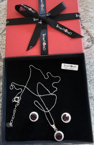 Elegante conjunto de bisutería ,plata con pedrería la marca Time Road, ideal para complementar cualquier atuendo. - Collar con colgante. - Pendientes a juego. - Detalles en circonita. - Plata 925 ml