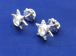 Elegantes pendientes con diseño de estrella de plata de primera ley 925 con Piedras Moissanitas VVS1 White G-H, de 4,5 mm 0,35 quilates cada una. Baño de rodio. Cierre con rosca. Únicos. Certificado! Nuevo. - Diseño de estrella. - Piedras centrales Moissanitas.