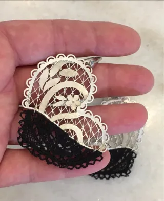 Elegantes pendientes largos combinando plata 925 y encaje negro. Únicos. Certificado. - Diseño de filigrana en plata. - Detalle de encaje negro en la parte inferior. - Cierre de anzuelo para mayor seguridad.