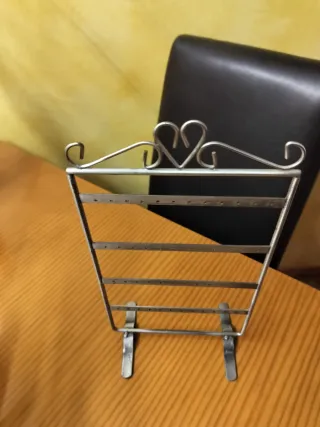 Expositor para pendientes con un diseño elegante. - Fabricado en metal. - Múltiples niveles para organizar tus pendientes. - Base estable para colocar sobre superficies. Tiene algun desgaste de oxido. En el Buen Pastor cerca La Maquinista.