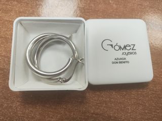 ✨ Pendientes de Plata de Ley – Aros (Nuevos de Joyería) Vendo pendientes de aro en plata de ley, adquiridos en joyería, totalmente nuevos y sin uso. Un modelo sencillo y elegante que combina con cualquier estilo. 🔹 Características: Material: Plata de ley Estado: A estrenar Diseño clásico y atemporal Cierre seguro y cómodo Incluyen caja de joyería 📐 Medidas: Consulta las fotos con regla para ver el tamaño exacto. 🚚 Envío: Wallapop Envíos o envío por agencia (2,20 €) ❌ No entrego en mano 💸 Precio no negociable