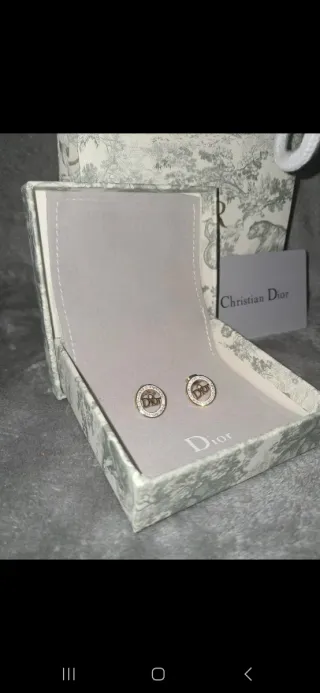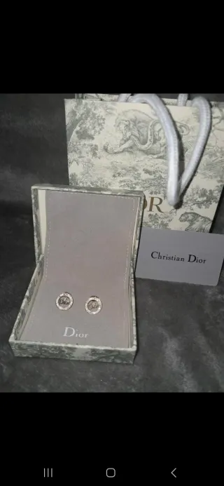 Material: Acero inoxidable chapado en oro. Elegantes pendientes de aro con el logo de Dior. - Diseño circular con circonitas brillantes. - Combinación de tonos dorados y plateados.