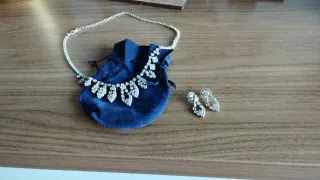 Conjunto de bisutería que incluye un collar y un par de pendientes. - Diseño delicado con pedrería. - Cadena plateada para el collar. - Pendientes a juego con el collar.