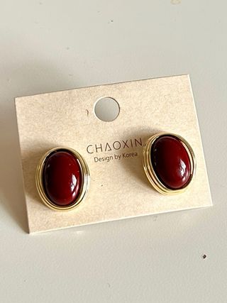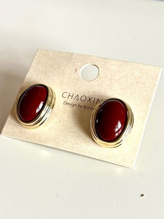 Elegantes pendientes con un diseño ovalado y un llamativo detalle en piedra roja. 925 plata 2cm