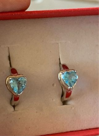 Elegantes pendientes de plata con forma de corazón y aguamarina. - Diseño de corazón. - Piedra central de aguamarina. - Cierre de plata.
