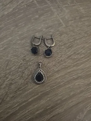 Elegante conjunto de joyería compuesto por pendientes y colgante. - Fabricado en plata de ley 925. - Diseños con detalles en piedras azules. - Incluye un par de pendientes y un colgante a juego.