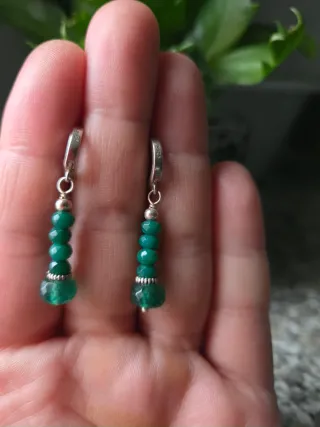 Elegantes pendientes elaborados en plata de ley 925, adornados con cuentas de jade en un vibrante tono verde. Cuentan con un diseño colgante que añade un toque de sofisticación. - Cierre de plata de ley 925. - Cuentas de jade facetado. - Diseño colgante.