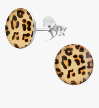 Pendientes de tuerca con estampado de leopardo y caja de regalo, plata de ley 925, tamaño 8 x 8 mm, redondos con cierre de tuerca. En caja regalo. A estrenar