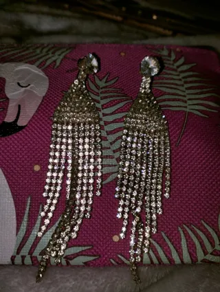 Pendientes largos plateados con pedrería
