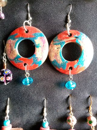 Pendientes Artesanales de distintos materiales y colores,de cristal Swarovski, piedras naturales, acero inoxidable, hipoalergénicos, plata de ley, resina, ámbar natural, cuero,coco, cristal Swarovski, cristal de murano,etc... 1x5€ 2x9€ HAGO LOTES!!!
