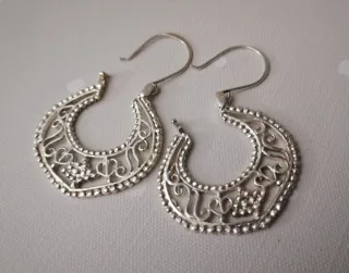 Elegantes pendientes de plata con un intrincado diseño de filigrana. - Elaborados en plata. - Diseño calado con detalles. - Cierre de anzuelo.