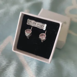 Pendientes de plata de primera ley con un toque de color. - Diseño con piedra rosa. - Cierre de presión. - Sin estrenar.