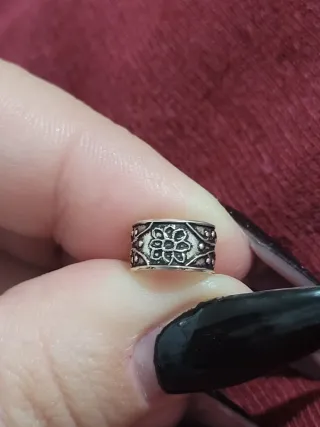Este pendiente presenta un intrincado diseño floral en relieve. Es un accesorio delicado y con un estilo único. - Diseño de flor central. - Bordes decorados con pequeños puntos. - Acabado envejecido.